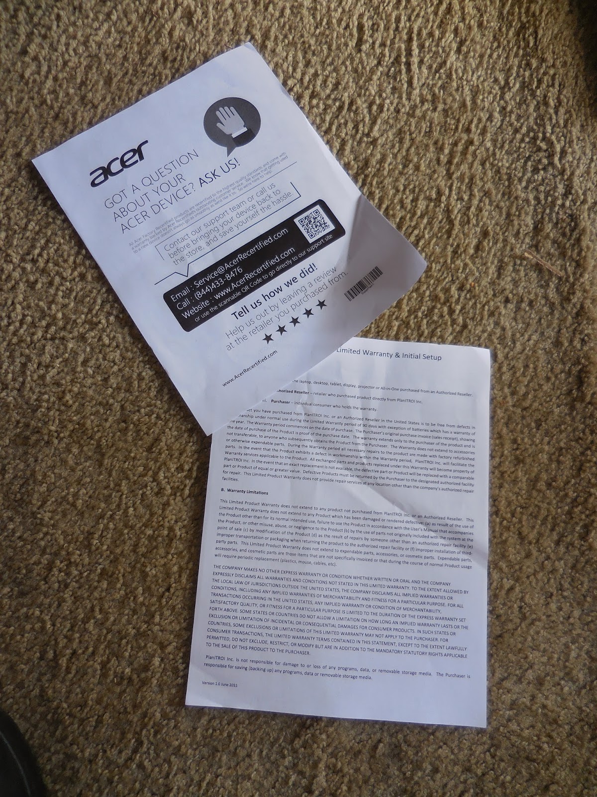 | The label from Acer |