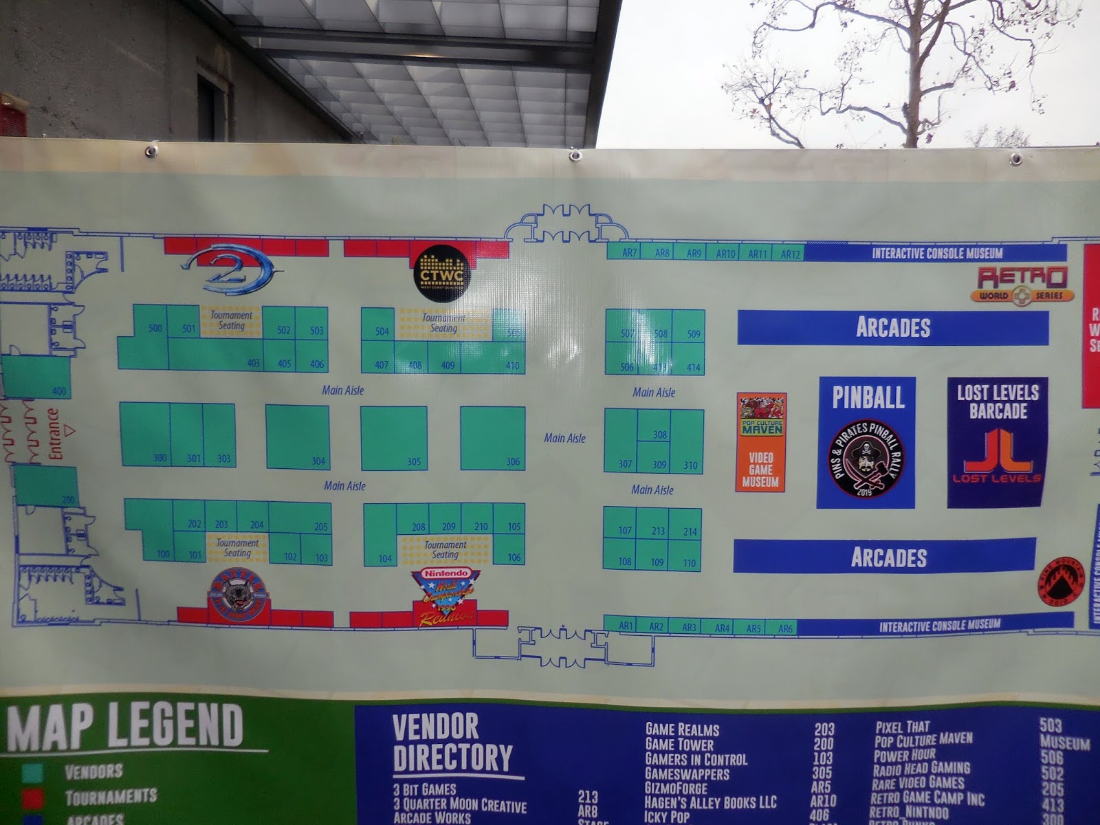 | Organizer Steve Cortez (left) scans the arcade before the show. |